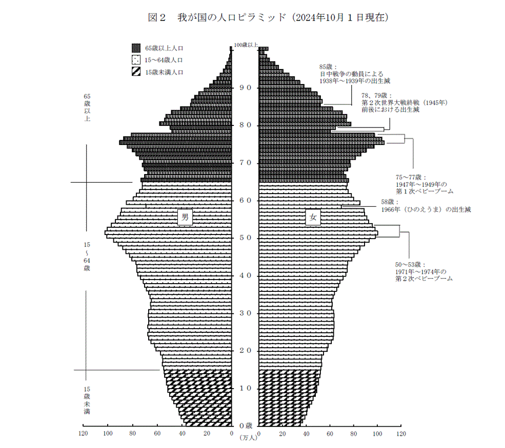 六十干支が一巡すると還暦となります。今年還暦となるのは、1966年(昭和41年)生まれの人です。日本の人口ピラミッドを見ると、この年の生まれの人はとても少なくなっています。