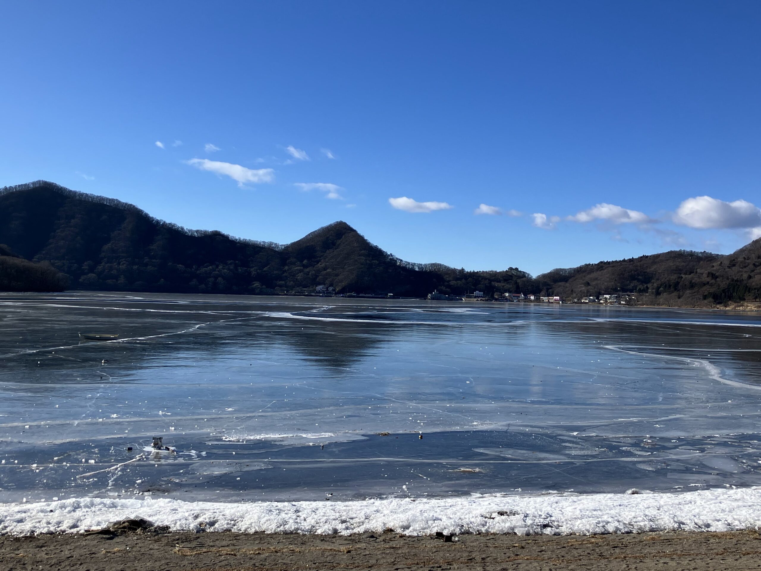 真冬の1月、日中の最高気温は5〜6°ですが、最低気温はマイナス10°でした。湖はほぼ全面氷が張っていて、近づくと「ピュン」とも「ビューン」とも言えないような音を奏でていました。初めて聞く不思議な音を体感できました。