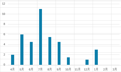 7月が多くなっているのは、日の出が早いために早起きができて、平日毎朝30分ずつオンデマンド研修を視ていたからです。