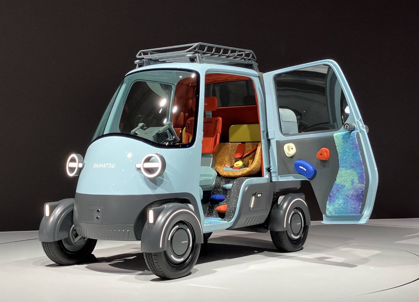 写真のダイハツメイは、昔の「ミゼット」を受け継いだ、軽EVだそうです。可愛くて写真を撮ってみました。