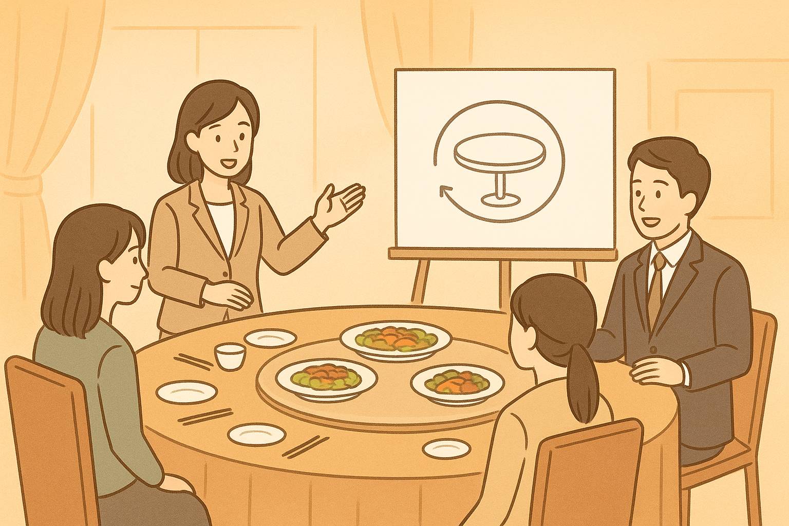 中華独特のマナーとして、円卓は時計回りに回すこと、逆回転は2