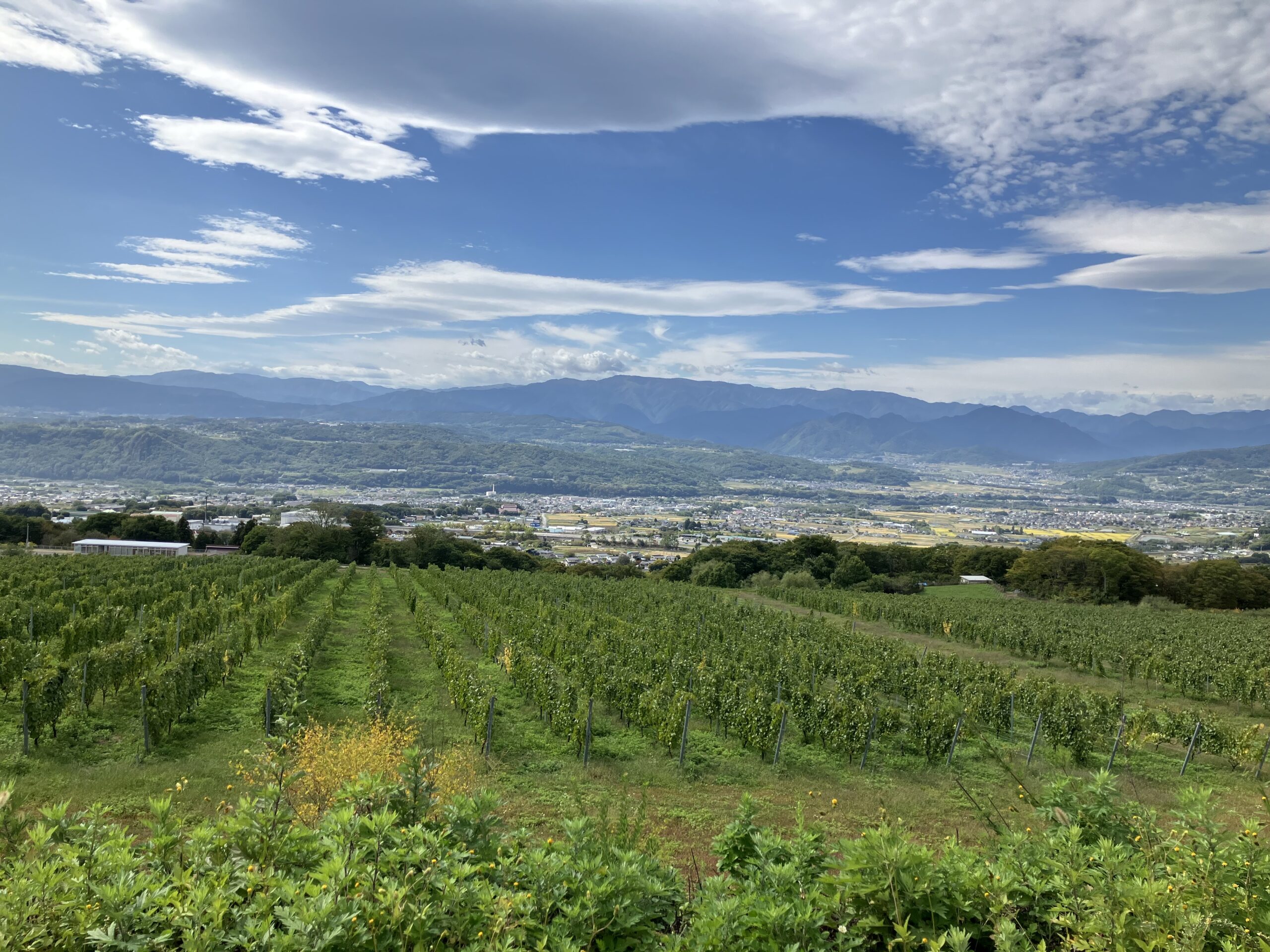 御堂ヴィンヤード(祢津御堂ワイン用ぶどう団地)は約27ha、11の生産者の畑が集まる団地です。ここから、眺める御牧原台地は絶景です。